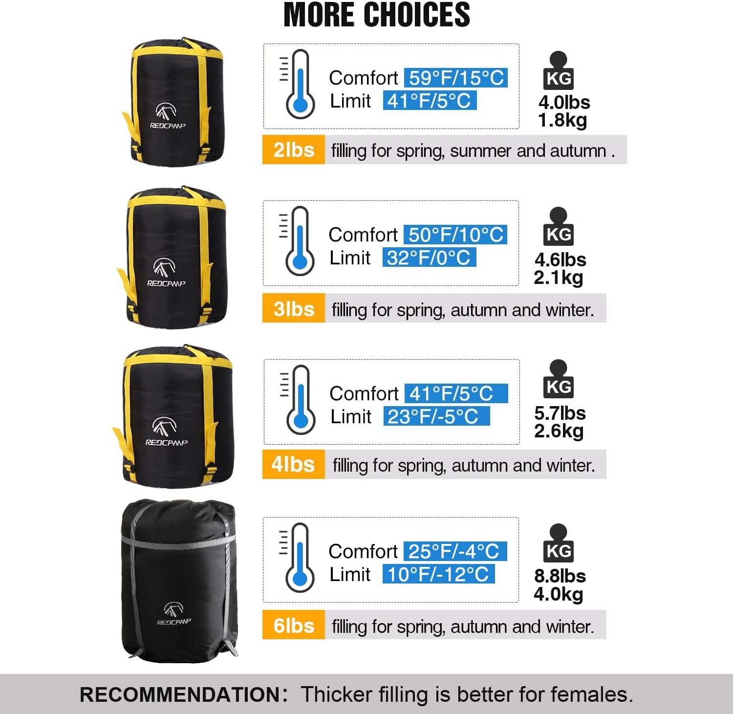 – **Versatile Filling Options:** Choose from 2, 3, 4, or 6 lbs of filling to suit your comfort needs and the climate you’re exploring. Each option ensures optimal warmth and insulation for different temperatures.